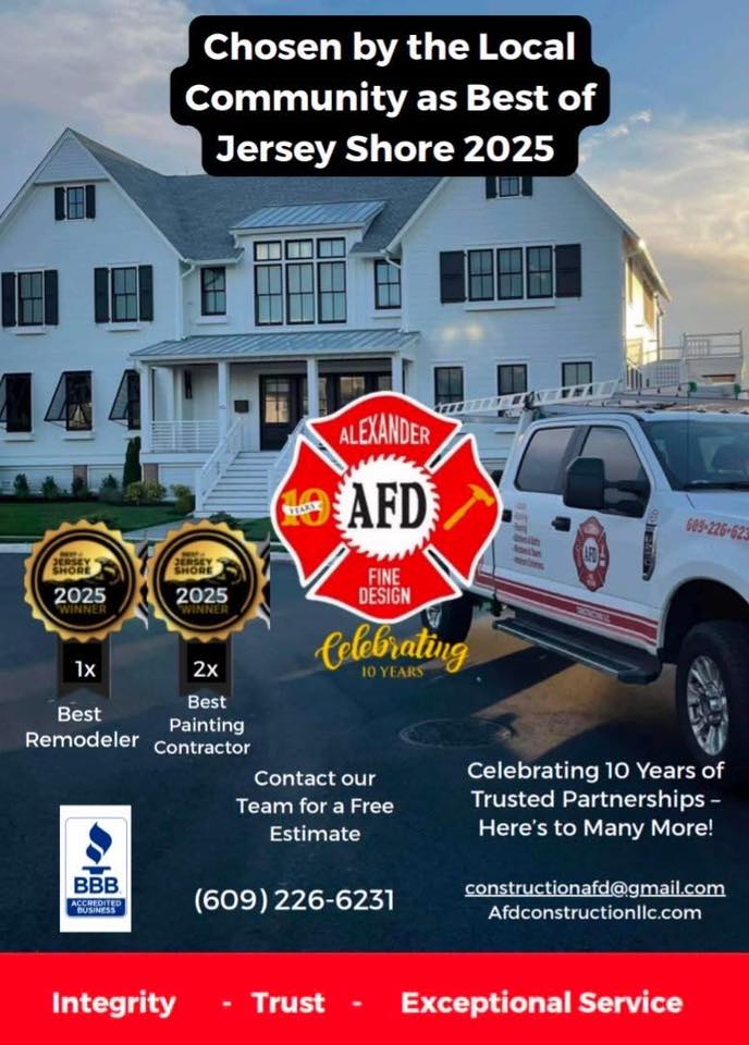 At AFD Construction, we proudly serve homeowners throughout Egg Harbor Township and surrounding South Jersey communities. We are: